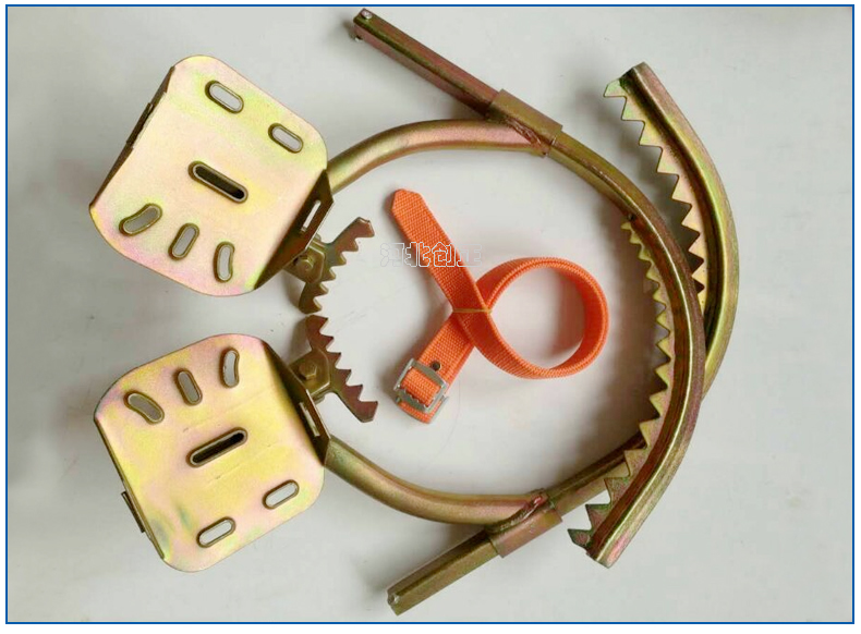 登桿腳扣是一種穿戴于腳部,供作業者從事水泥質電桿攀登作業的工具。