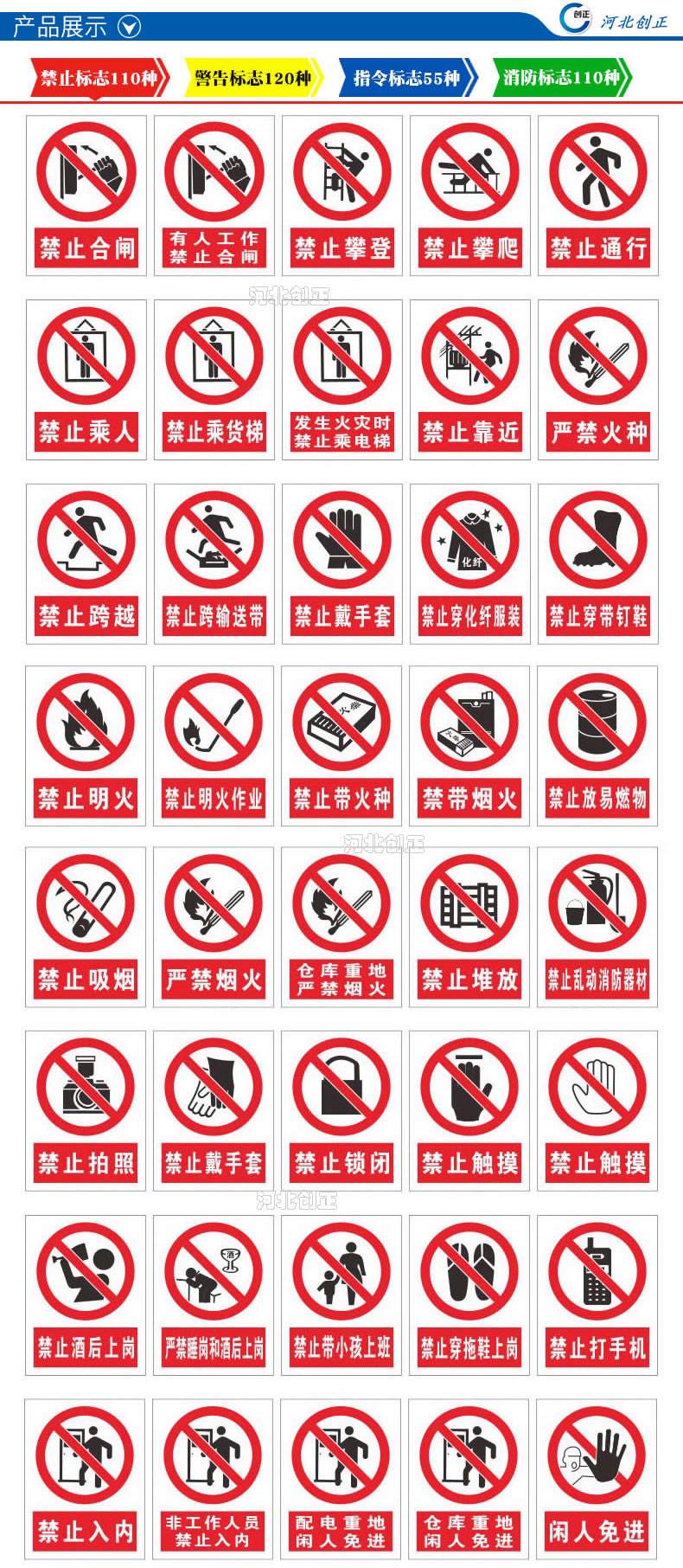 2、產品內容:禁止、指令、提示、線路相位、消防、通信、交通等。