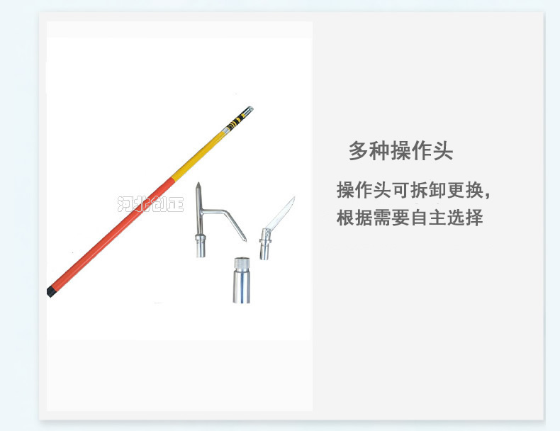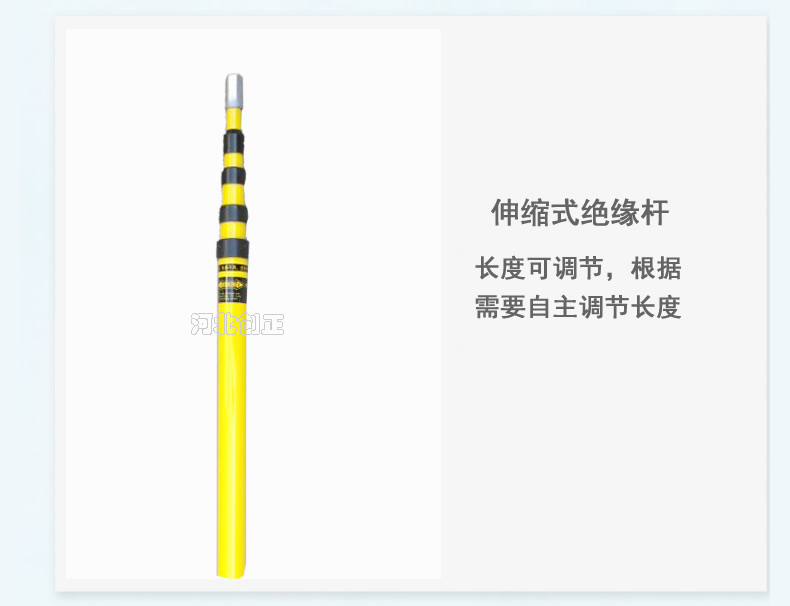 4、產品特點:重量輕,易攜帶,使用方便,可根據使用空間伸縮定位長度,克服了接扣式拉閘桿因長度固定而使用不便的缺點。